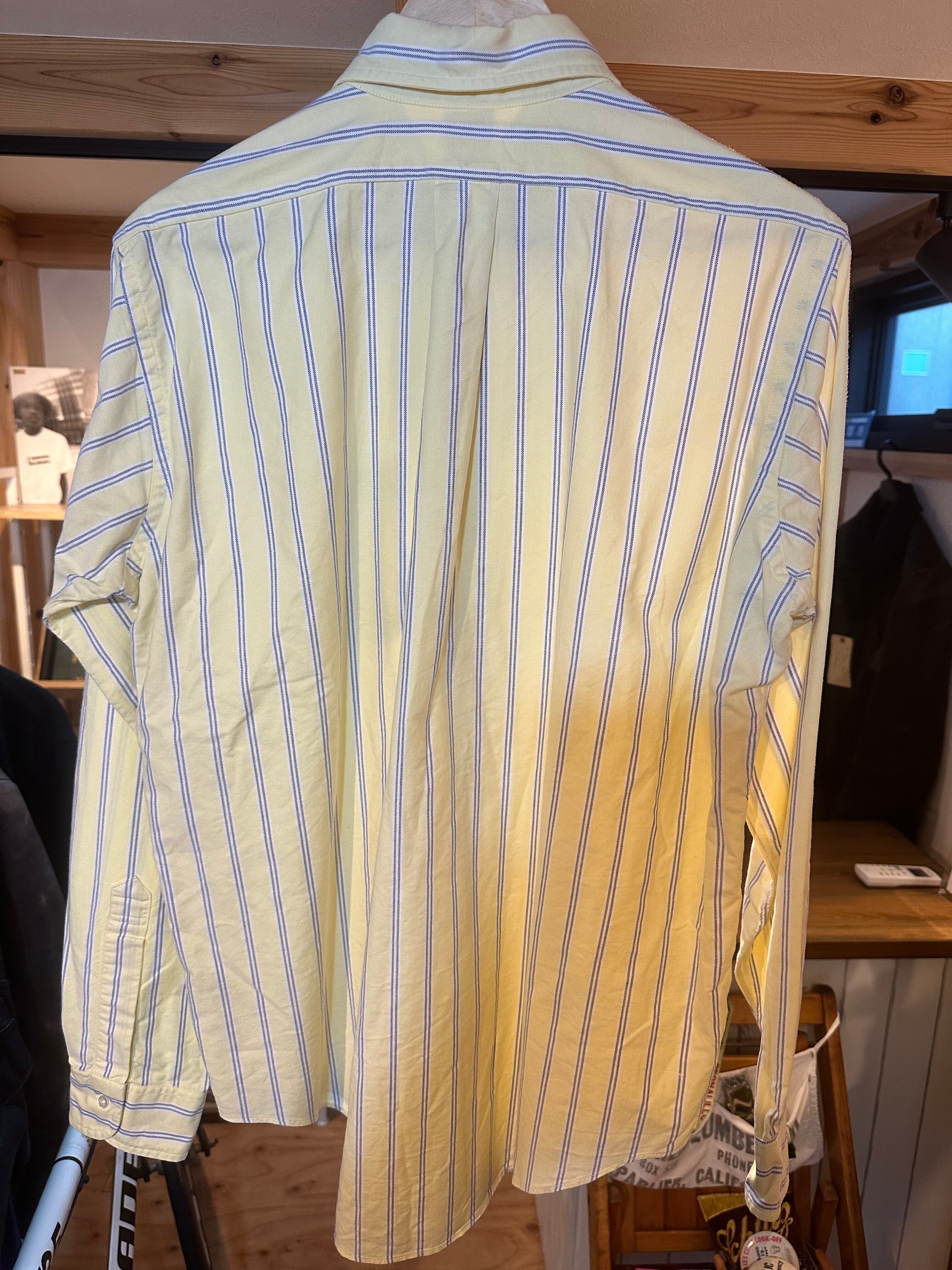 現行にはない渋い色味のイエローベースにストライプ柄。最高級ラインを示すmakers表記でサイズも15 1/2 。