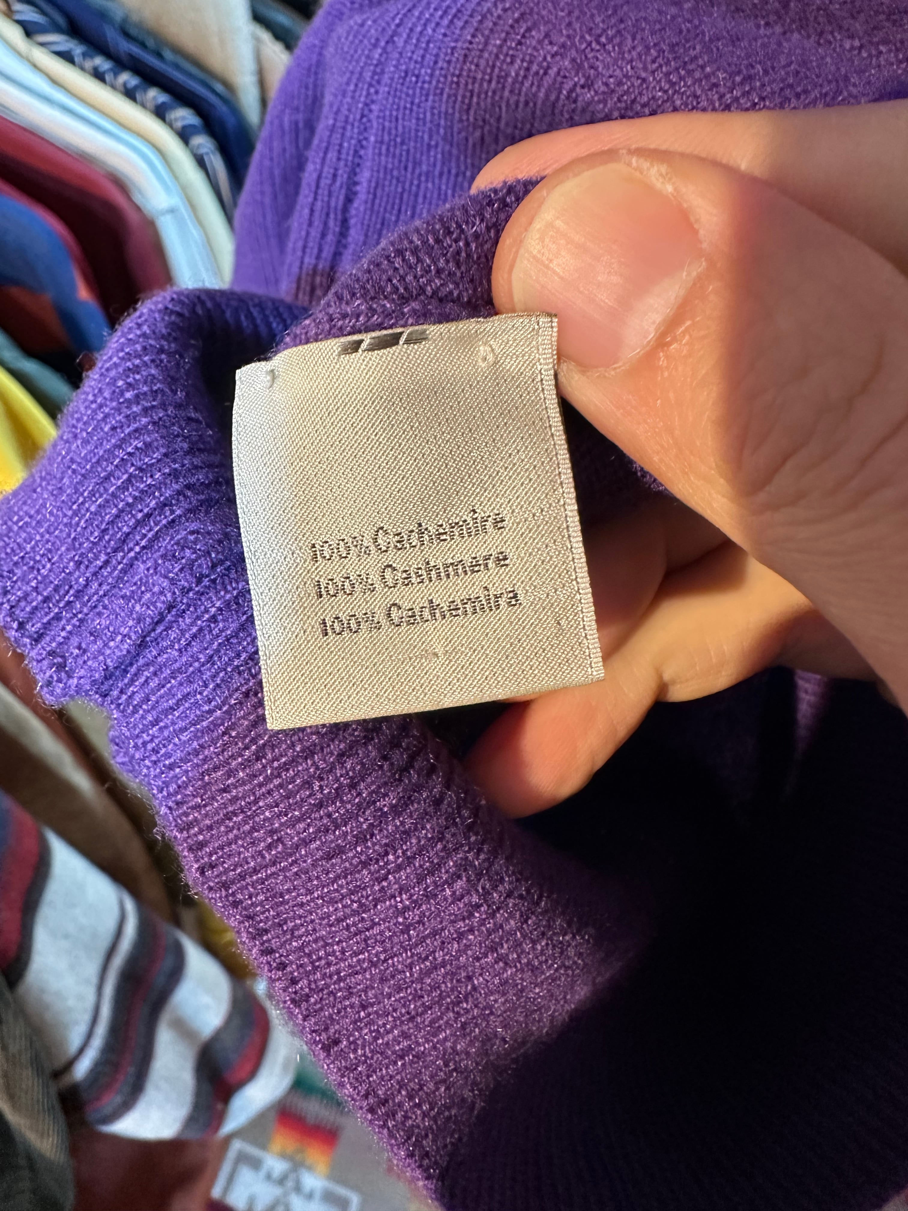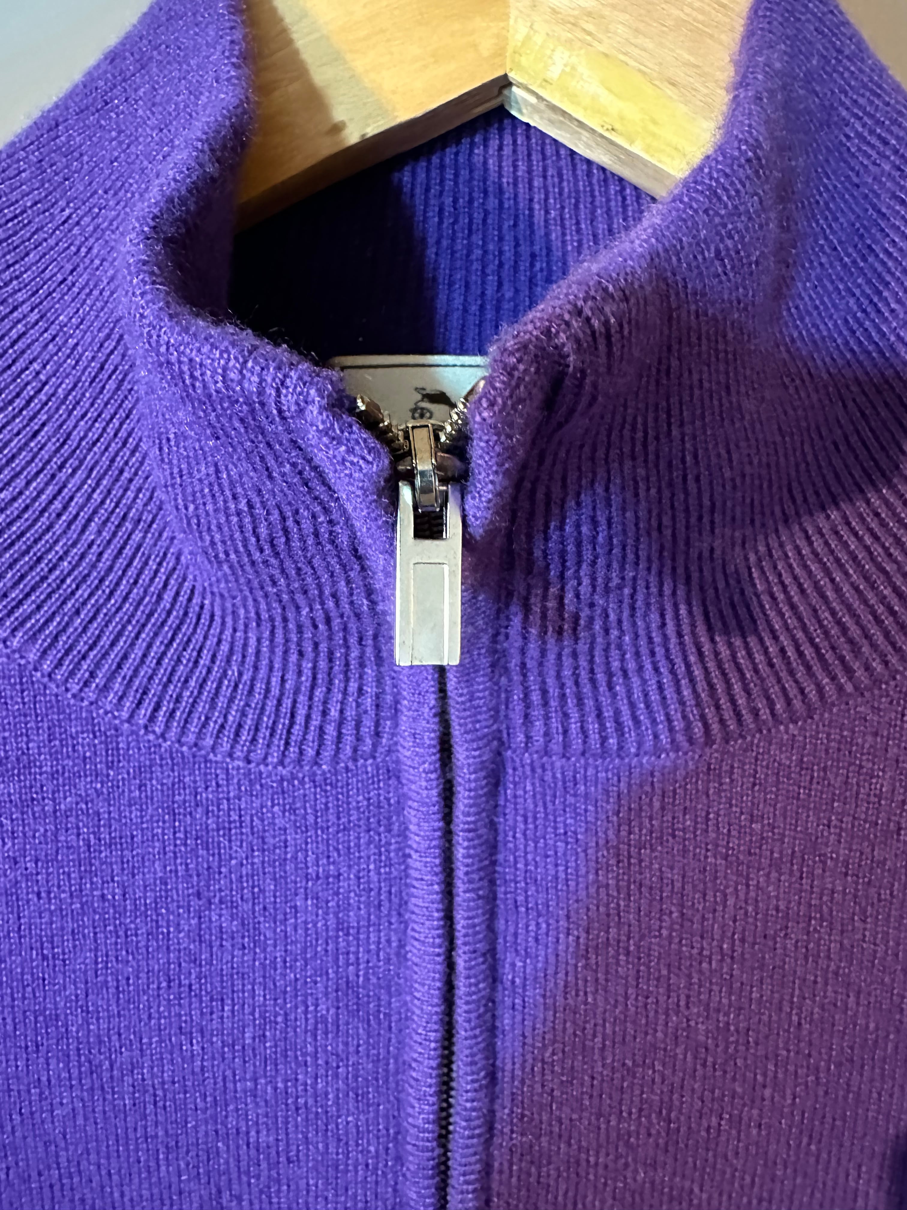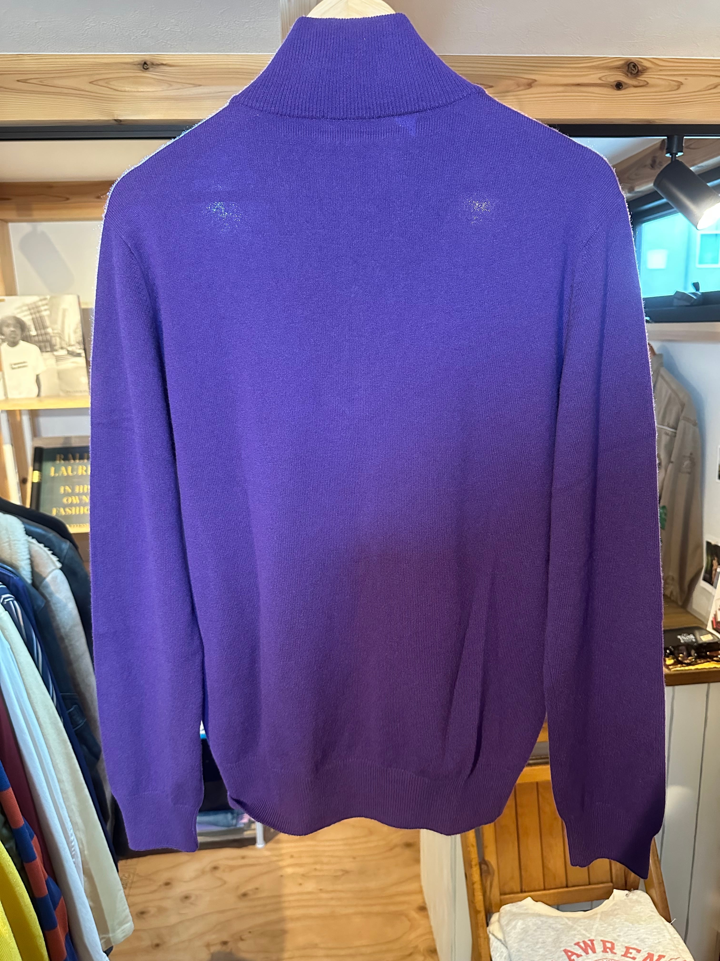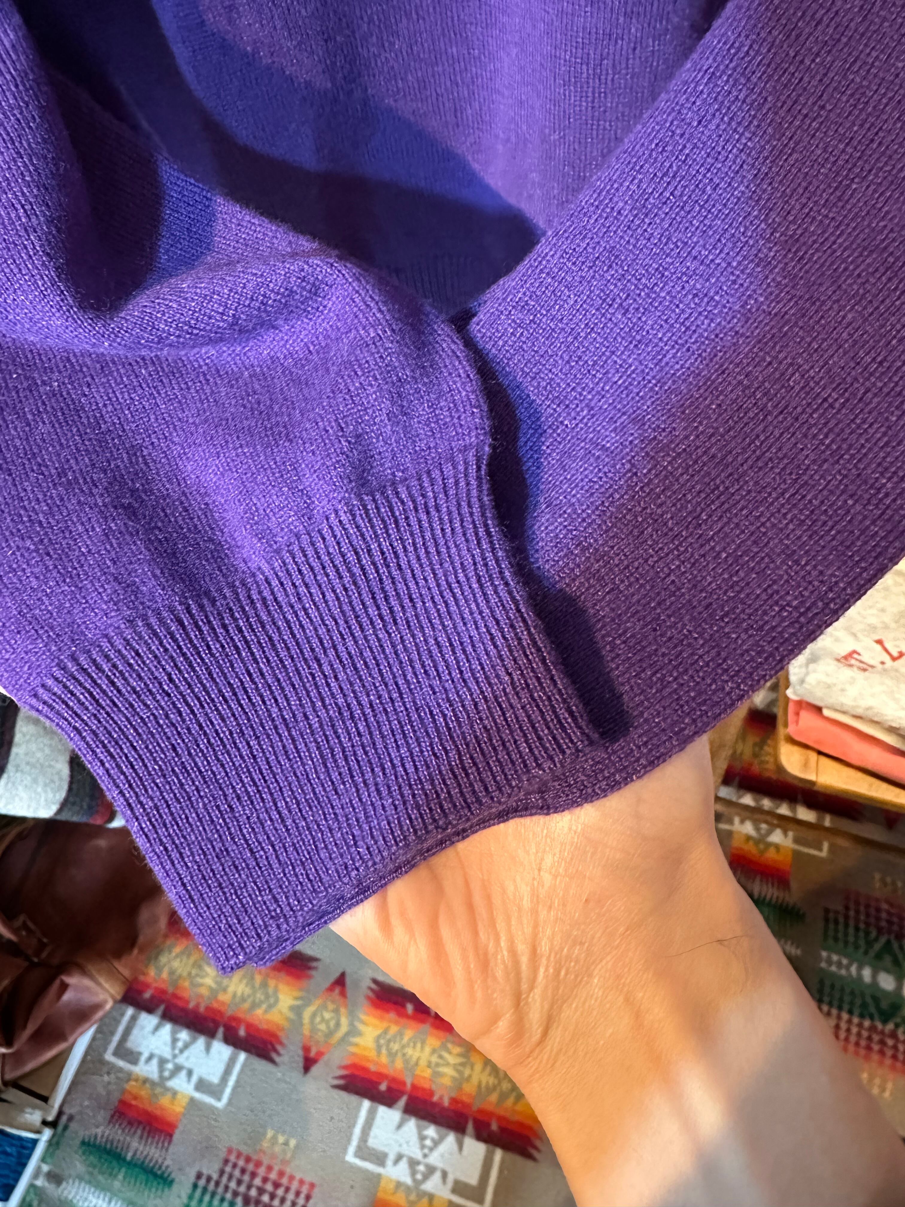 エルメスの高級素材カシミヤを贅沢に使った最高急ニットです。色も珍しいパープルですが、エルメス らしく品のある強過ぎない発色で見るからに美しく高級感漂います。
