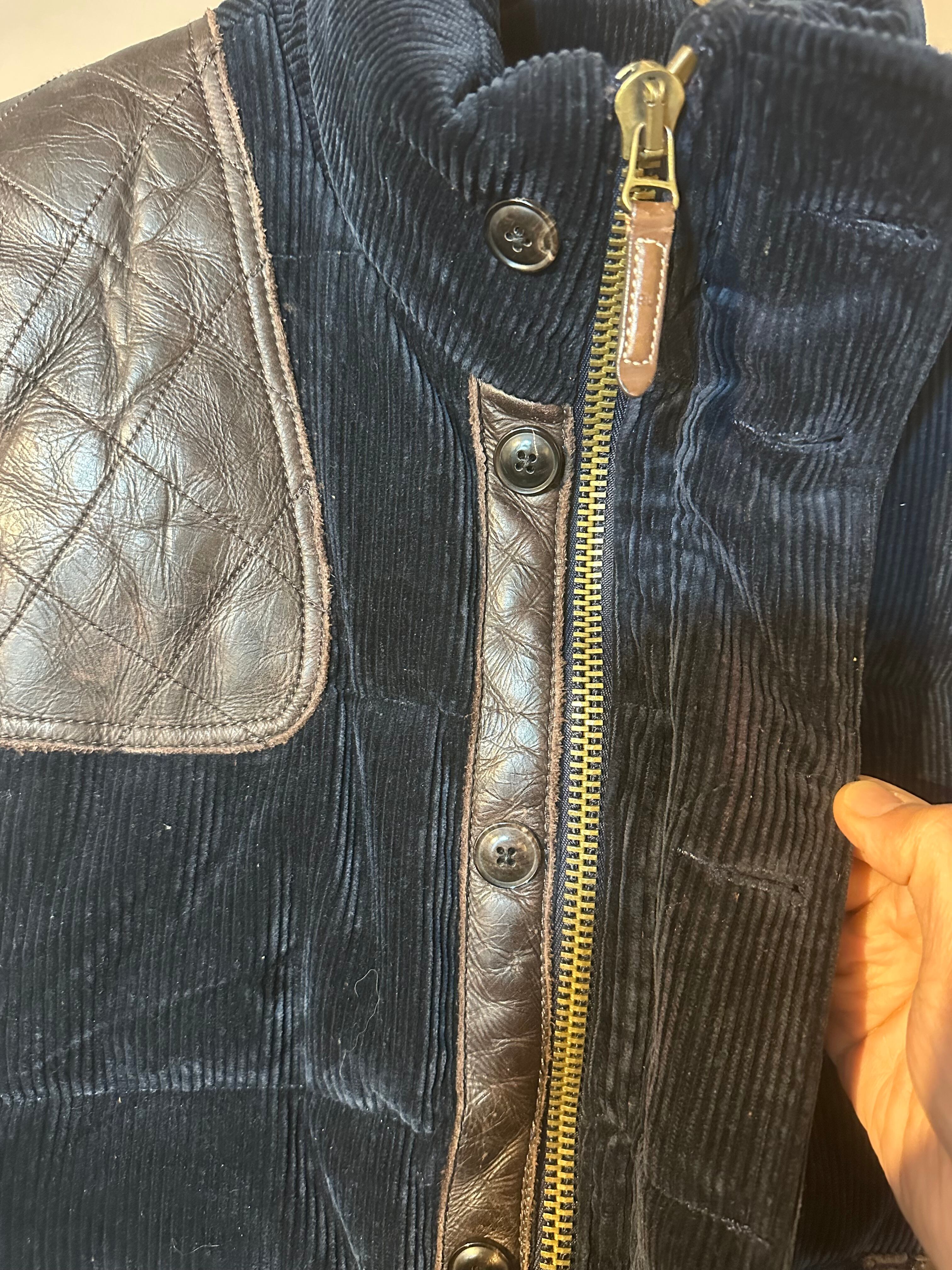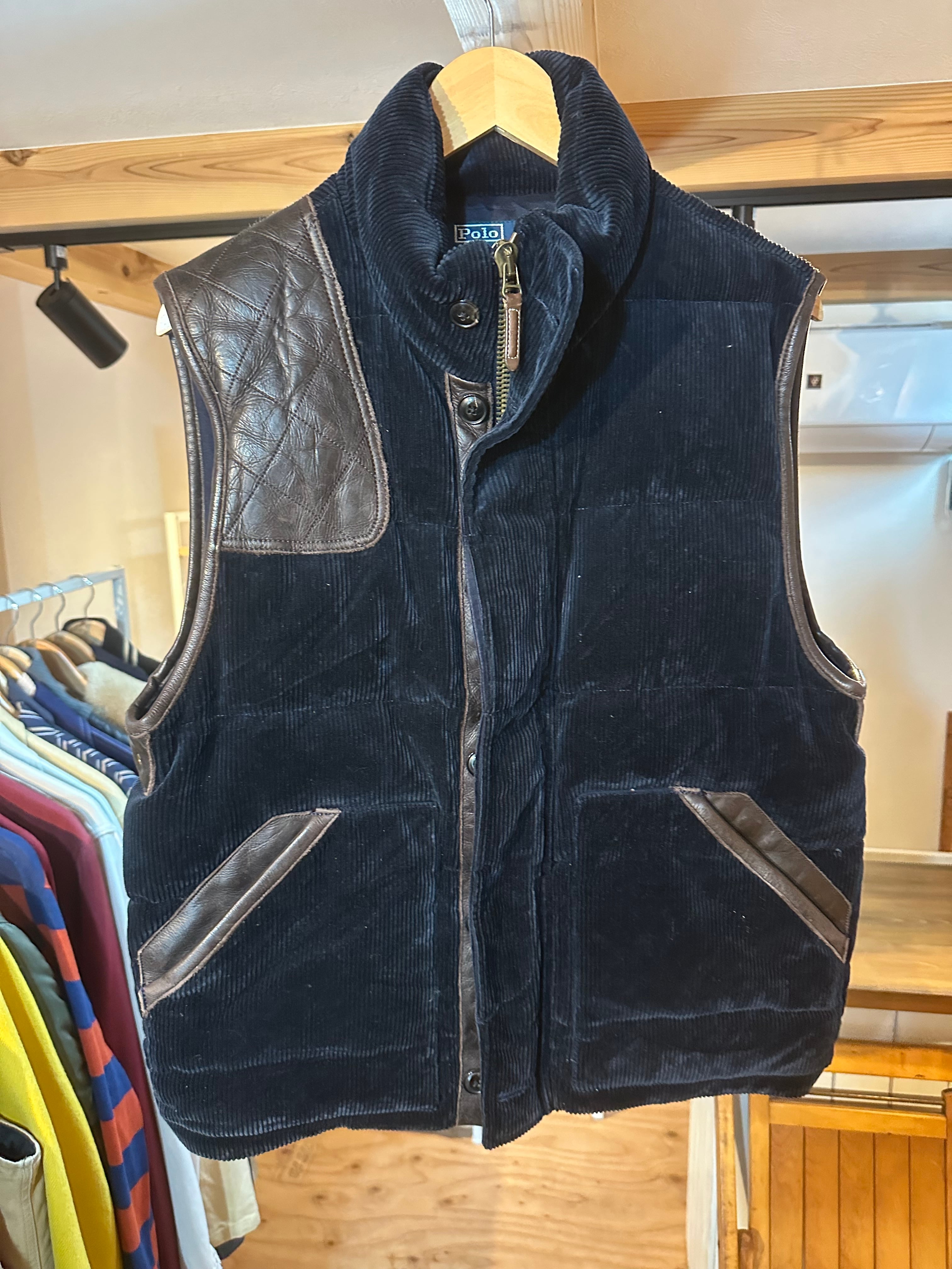 コーデュロイもレザーの切り替えが特徴的なラルフローレンのダウンベスト。