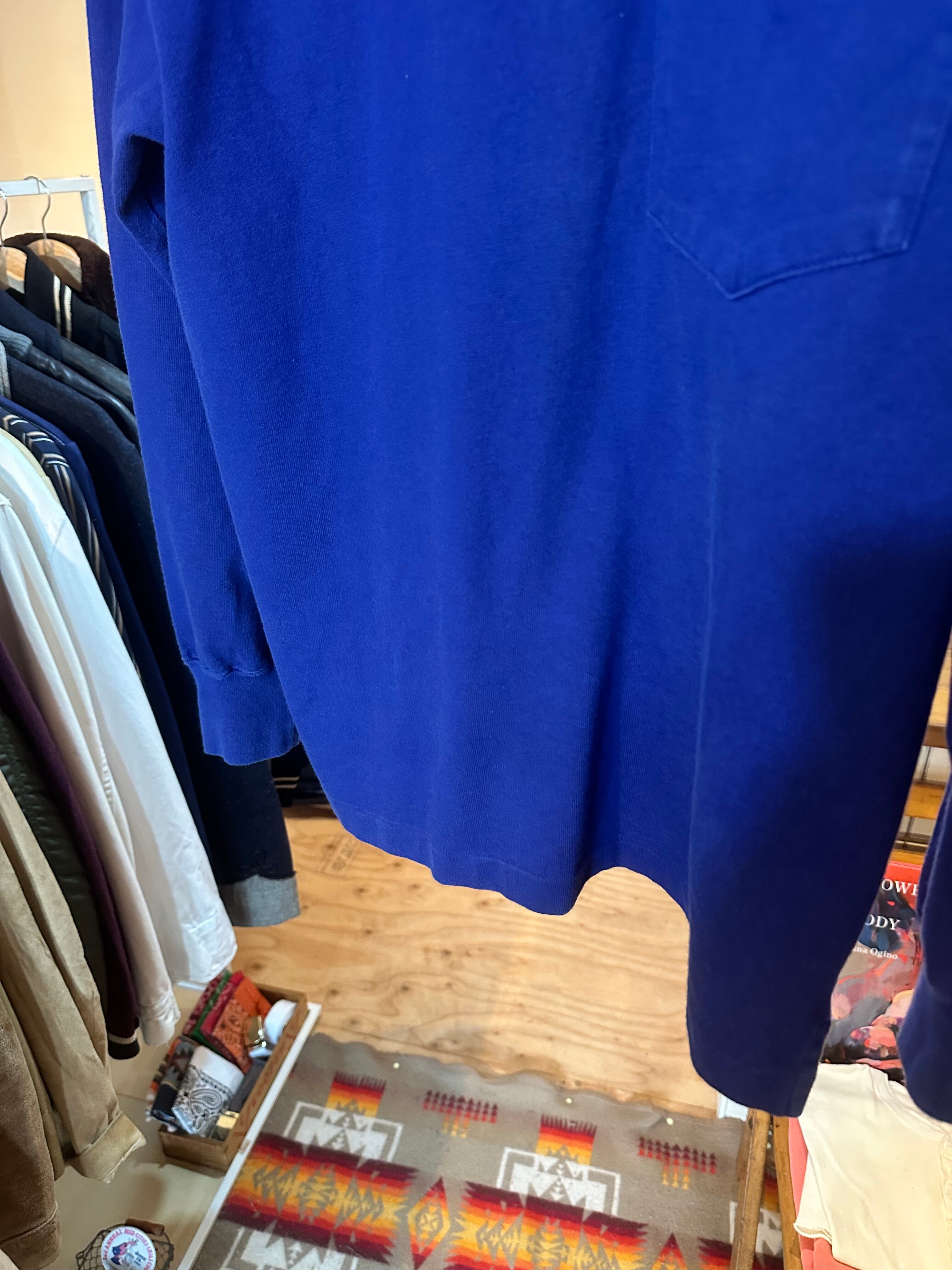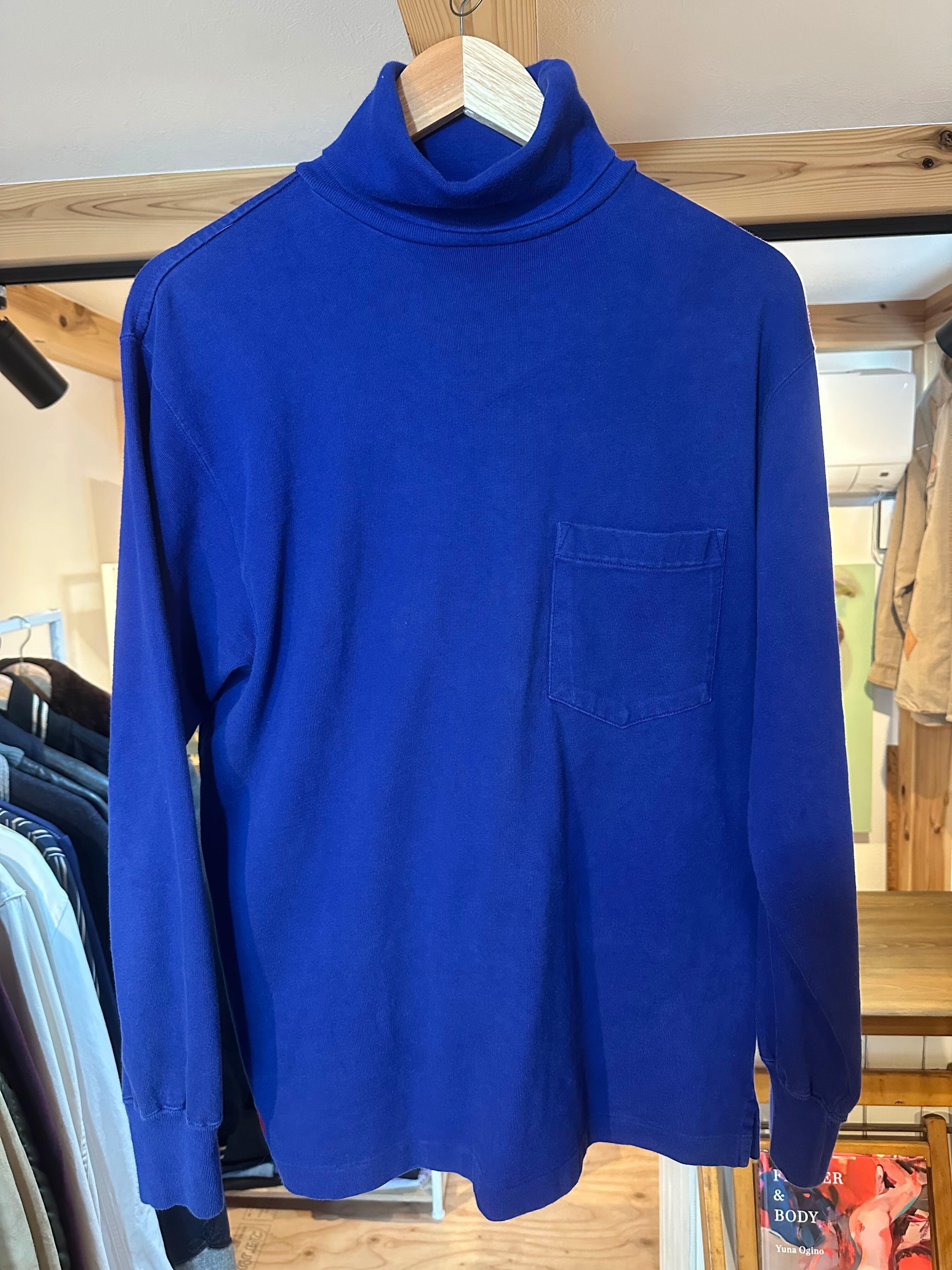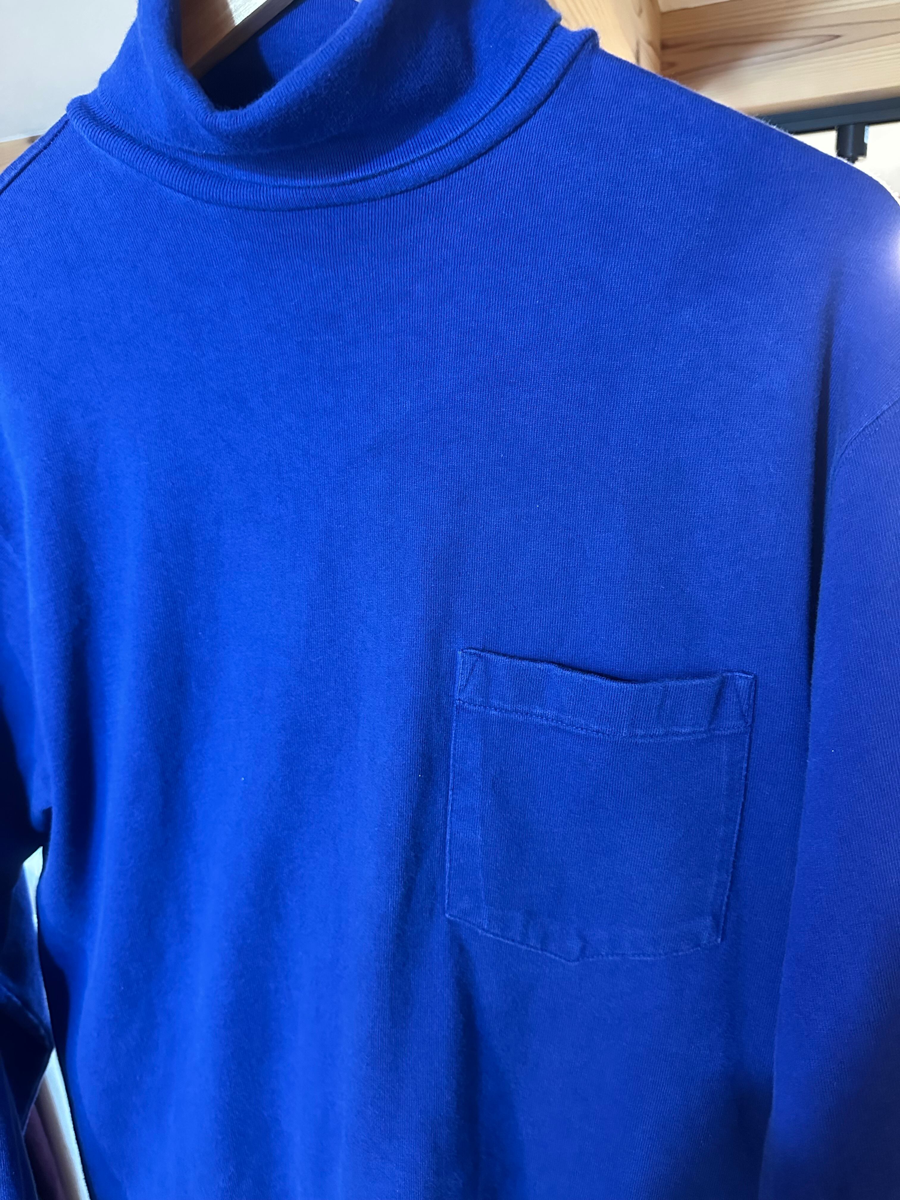 こちらはコットン素材のタートルネック仕様のカットソー。鮮やかなブルーで胸元のポケット、ポニーなしと、オシャレがしたいときの春先のインナーとしてかなり優秀なカットソーではないでしょうか。