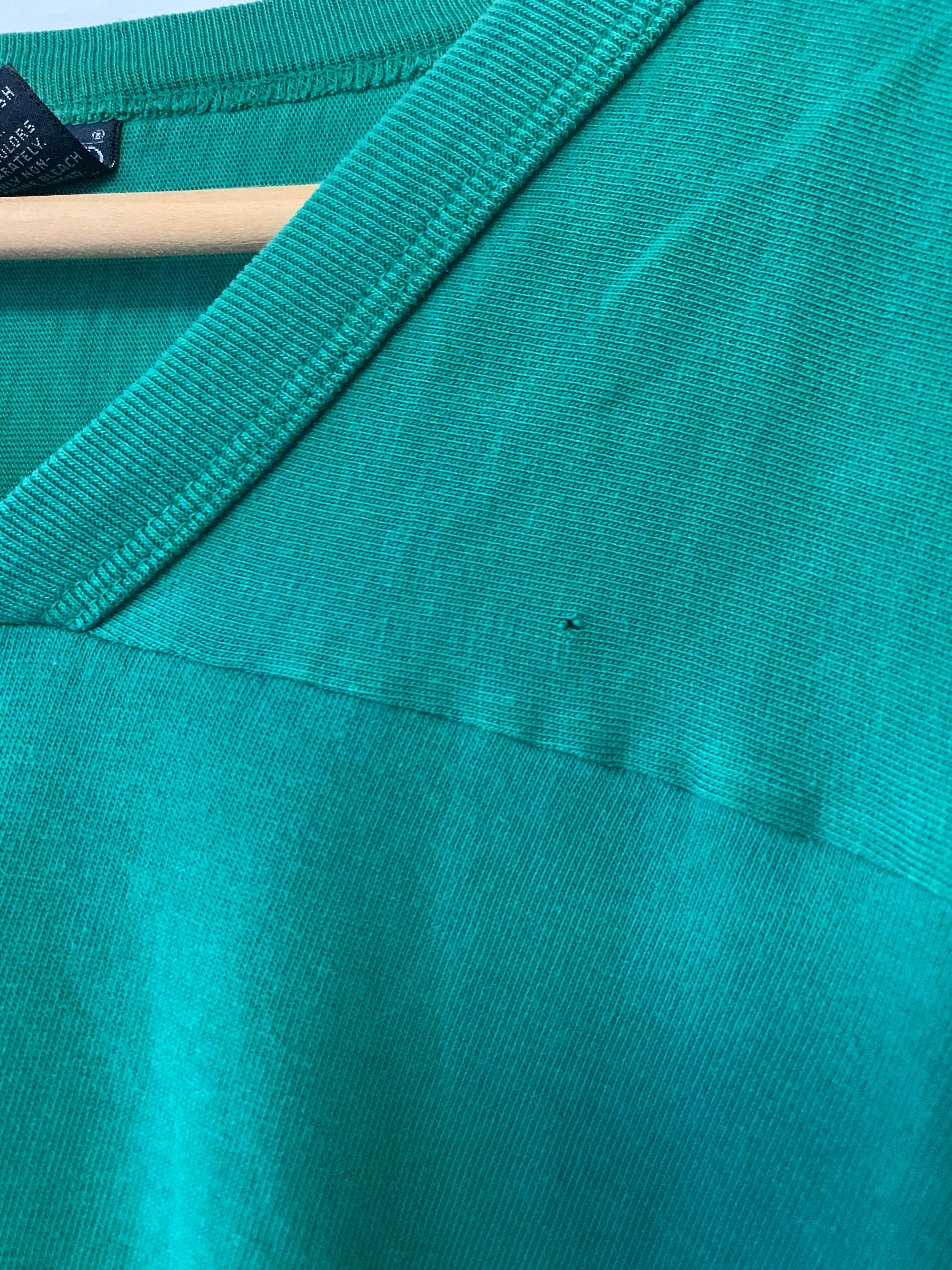 80s ランズエンド フットボール T シャツ Vネック グリーン 無地